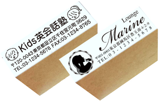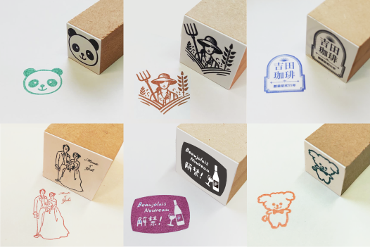 住所印をはじめ、ロゴ入り住所印、イラストゴム印、氏名印、のし用、日付印(データ印)などに対応しています。