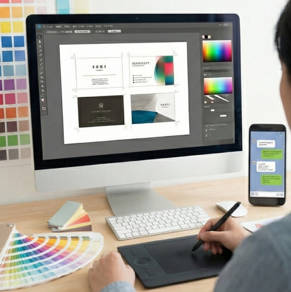 レイアウト・色味・書体など、名刺全体のデザインについてご相談いただけます。 業種や使う場面を踏まえ、「仕事で使いやすく、伝わる名刺」を一緒に作っていきます。