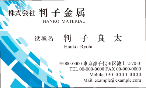部署名・工場名・資格欄を分かりやすく整理し、堅実で信頼できる印象の名刺を作成します。
